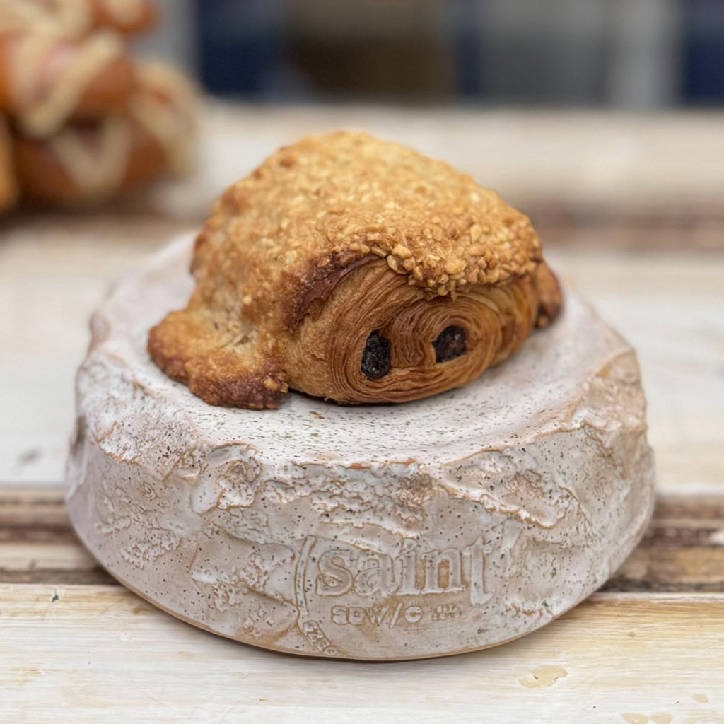 Puha vajas francia croissant tészta étcsokoládéval töltve.