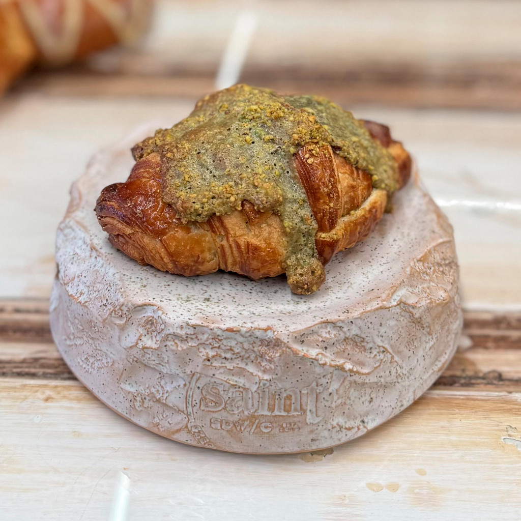 Puha vajas francia croissant pisztáciakrémmel töltve.