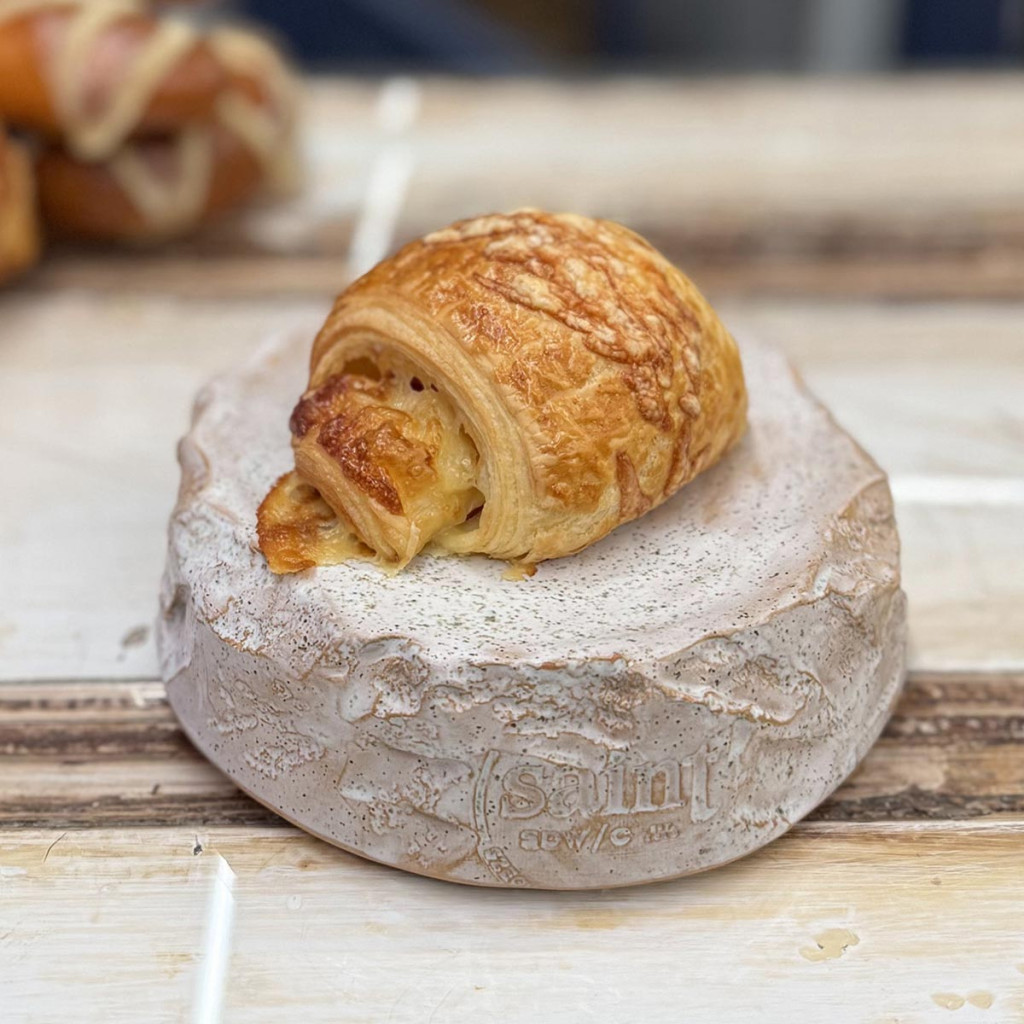 Puha vajas francia croissant tészta sajttal és sonkával töltve.